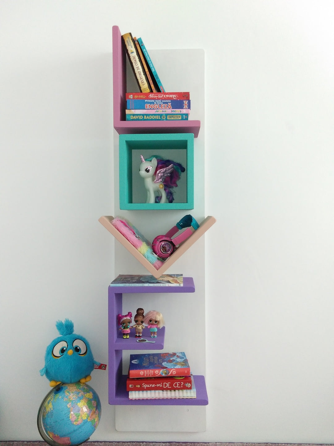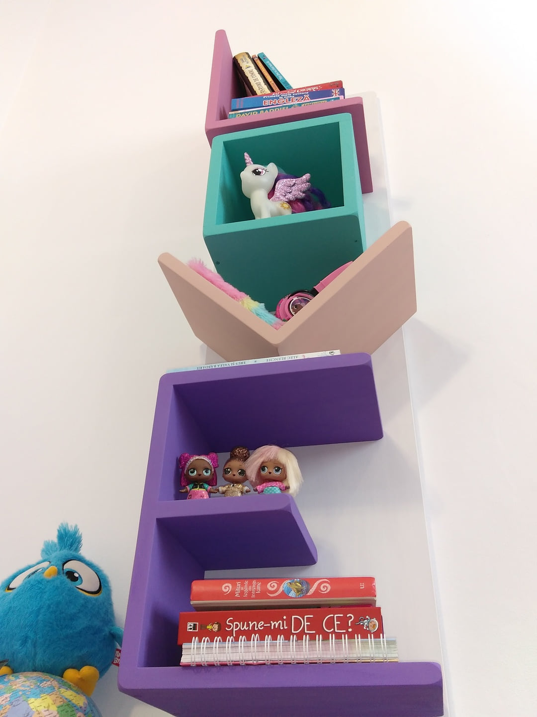 Designul raftului pentru camera copil este realizat de Atelierul de tamplarie din Targu Mures. Producem la comanda acest gen de mobilier din lemn masiv. De asemeanea realizam si alte piese de mobilier din lemn masiv de tei sau alte esente pentru camere copii.