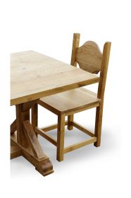 Atelierul de tamplarie din Targu Mures produce mese din lemn masiv pentru livinguri, bucatarii si tersase. Realizam la comanda orice piesa de mobilier din lemn masiv de stejar, fag, cires si alte esente. Masa in stil medieval, este realizata din lemn masiv de stejar si finisata cu Danish oil pentru ai pune in evidenta textura si fibra lemnului.