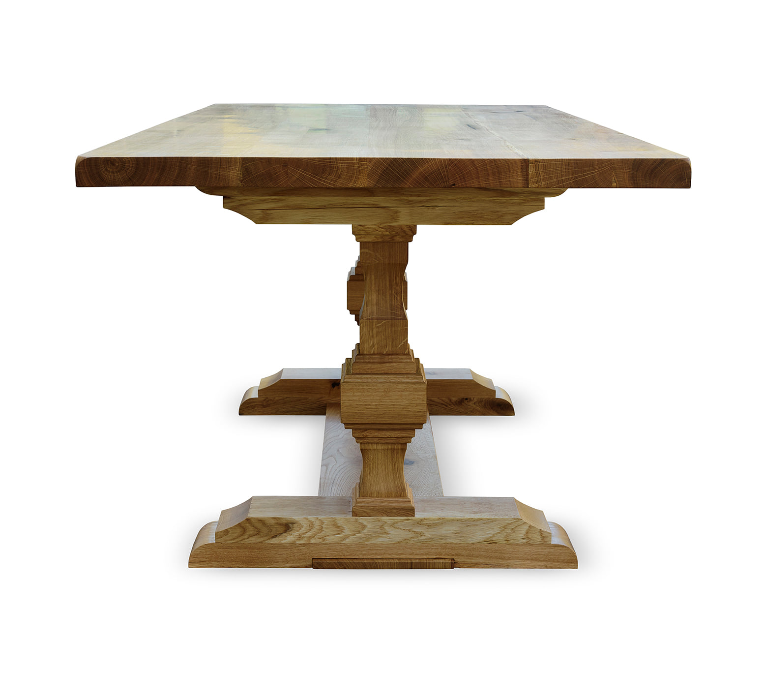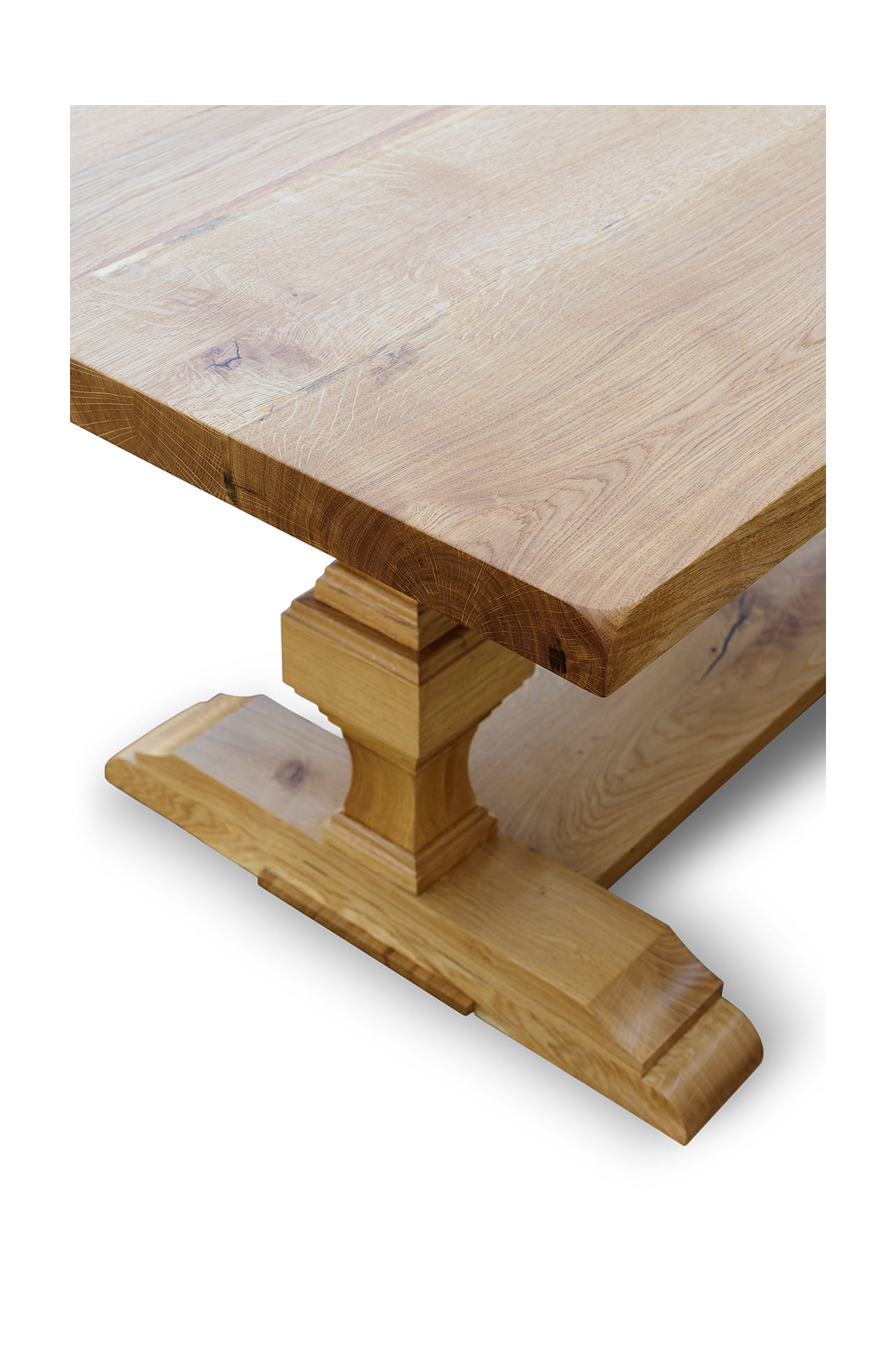 Masa Old Russian Style, este realizata din lemn masiv de stejar si finisata cu Danish oil pentru ai evidentia nervurile si fibra lemnului. Atelierul de tamplarie din Targu Mures produce mese din lemn masiv pentru livinguri, bucatarii si tersase. Realizam la comanda orice piesa de mobilier din lemn masiv de stejar.